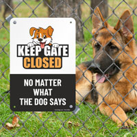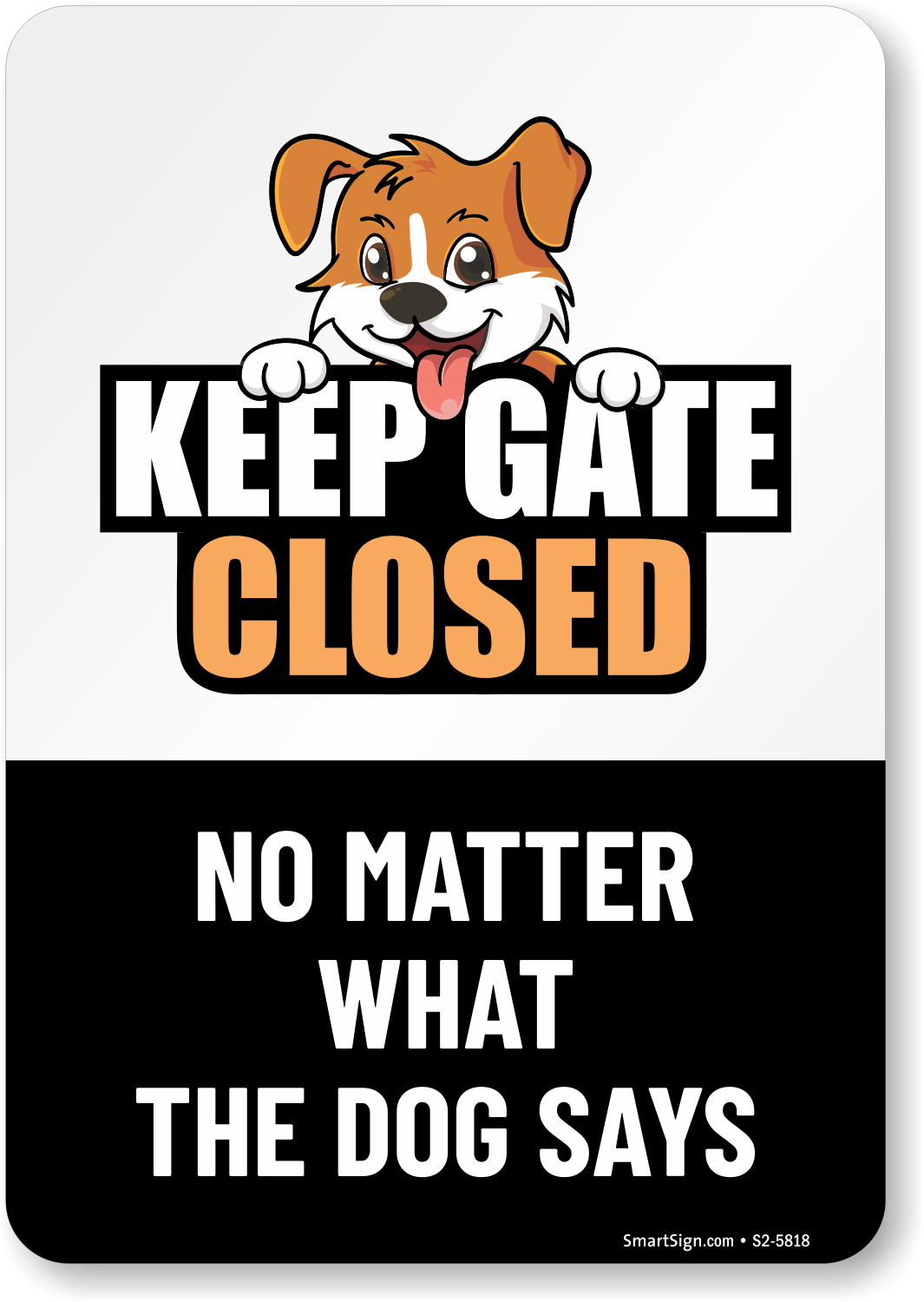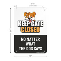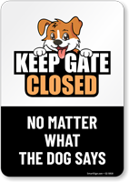 Dog Gate Warning Sign: Keep Gate Closed No Matter What The Dog Says S2-5818
