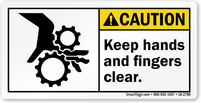 ANSI Caution Safety Label: Keep Hands And Fingers Clear (With Pinch Point Hand Entanglement Graphic) LB-2788