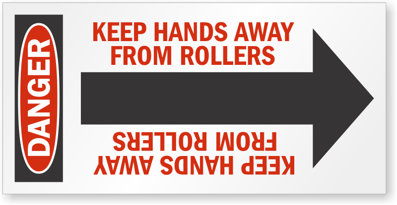 Danger Arrow Label: Keep Hands Away From Rollers LB-2477