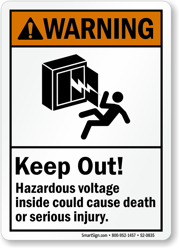 ANSI Warning Sign: Keep Out! Hazardous Voltage Inside, Could Cause Death Or Serious Injury