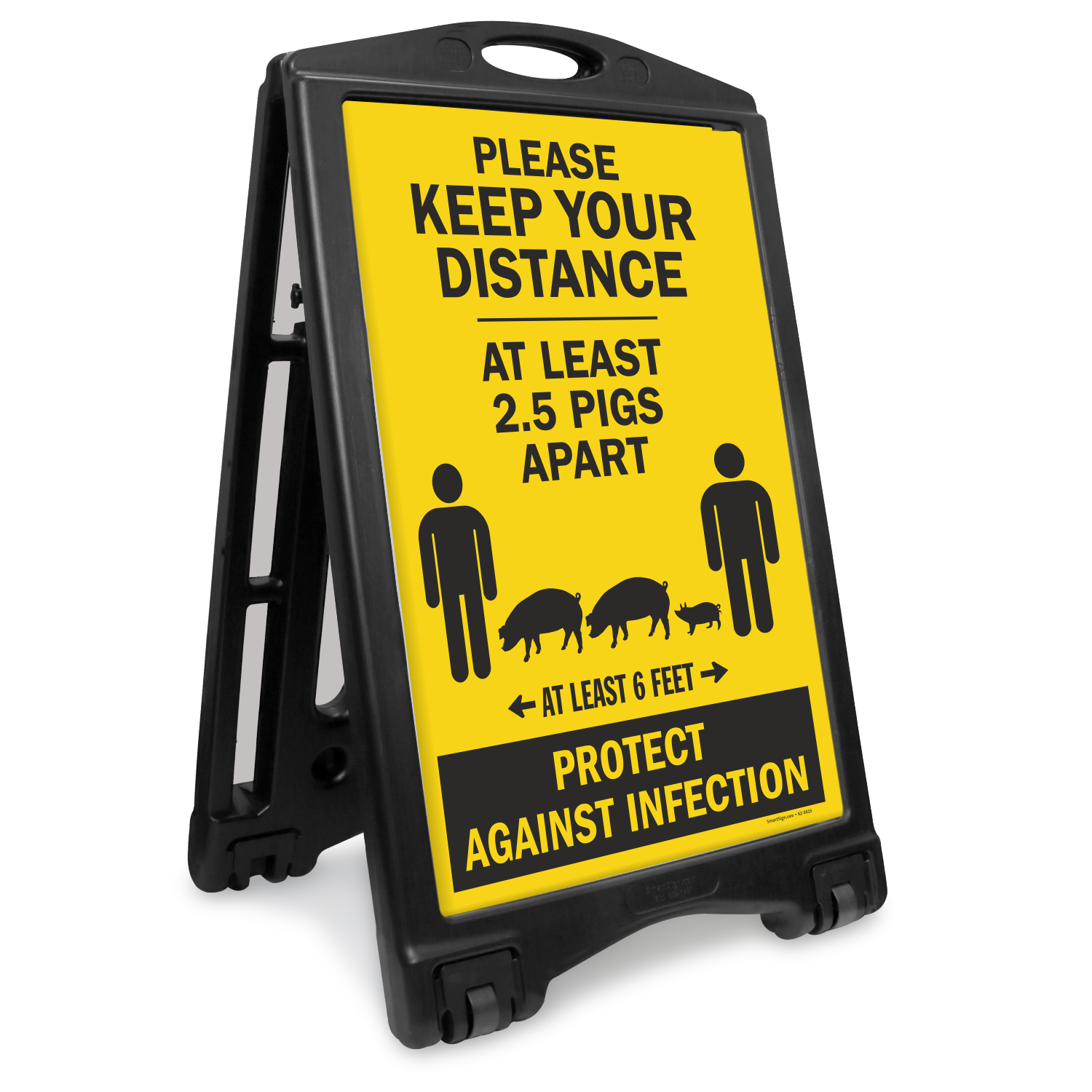 Who can ignore two and a half pigs? We bet no one, especially when they come on our conspicuous social distancing sign!