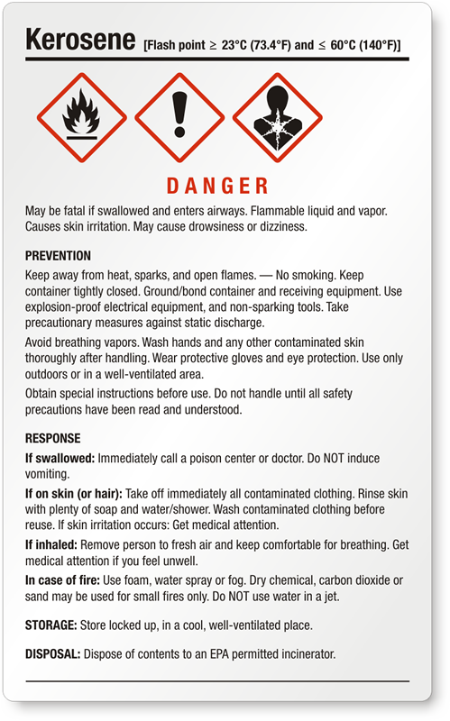 - View more GHS Kerosene labels here.