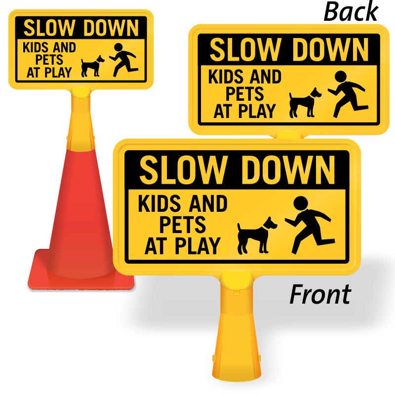 Use this highly-visible no-tip, portable Traffic Cone Sign to remind motorists to slow down as they are entering a play area. Choose between 1-sided and 2-sided cone sign.