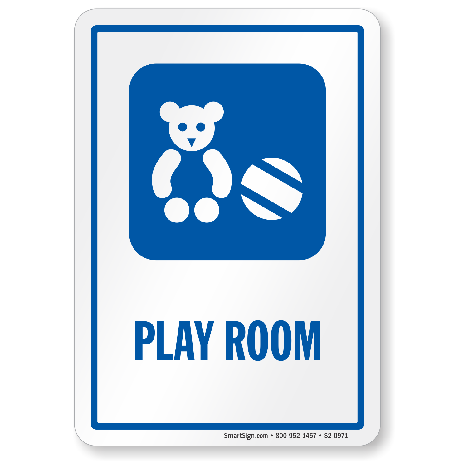 Direct parents, staff and visitors toward the play room at your facility. Mark it with this hospital sign displaying Teddy and Ball Symbol.