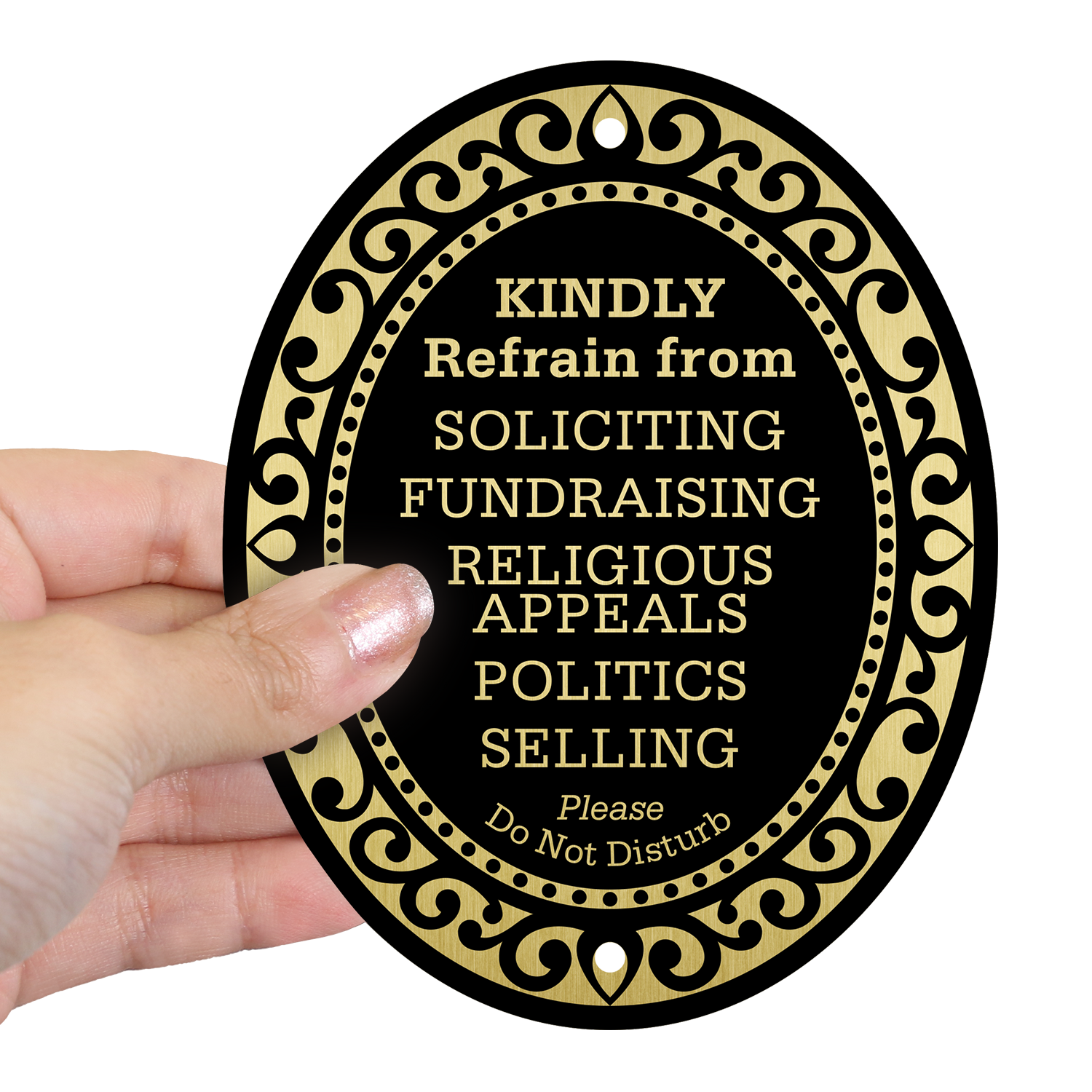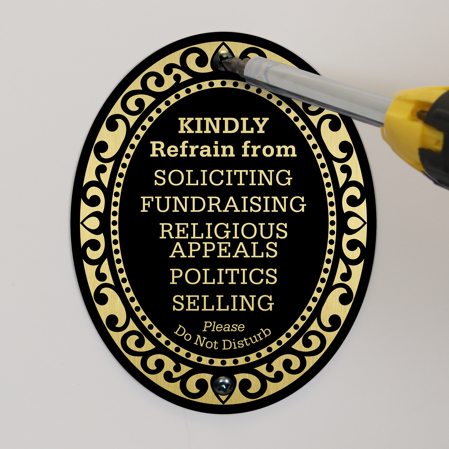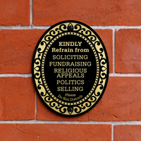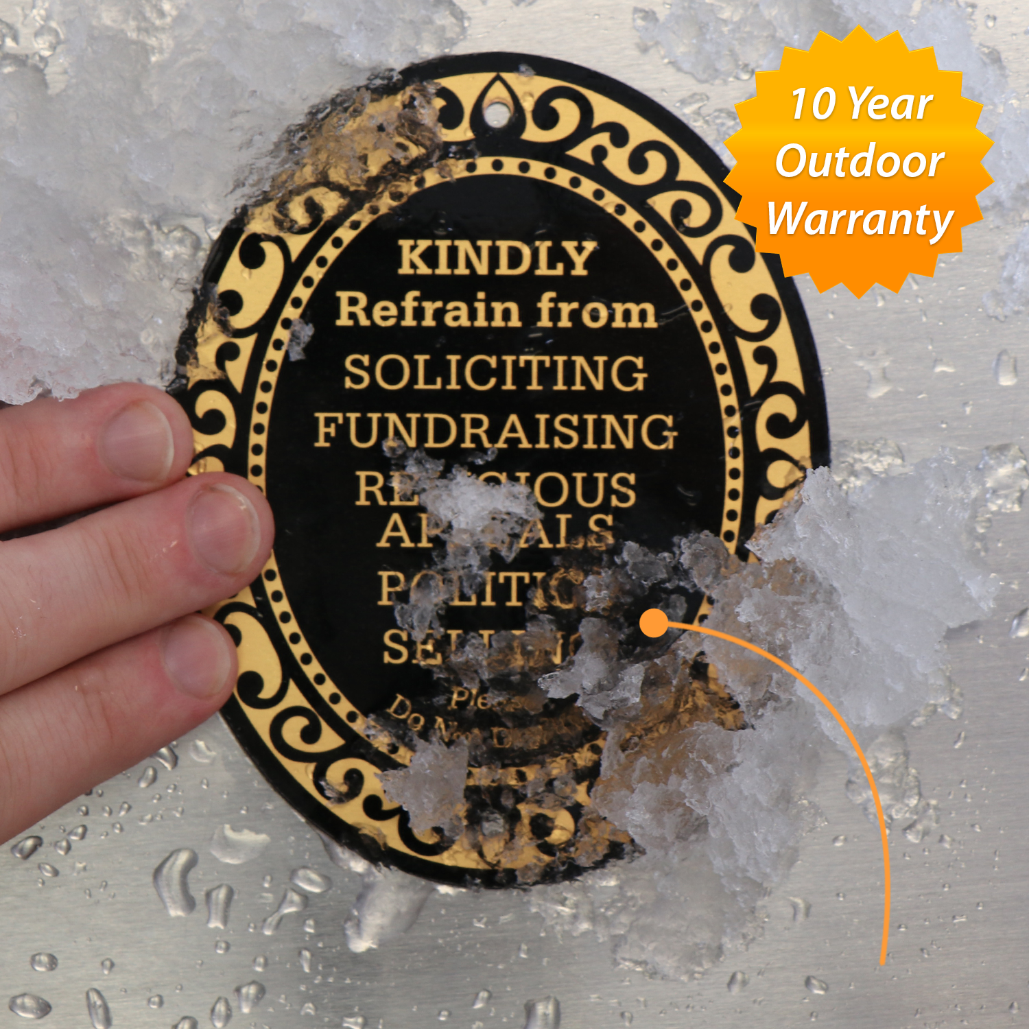 - This 32 mil thick aluminum DiamondPlate™ sign helps politely prevent soliciting.