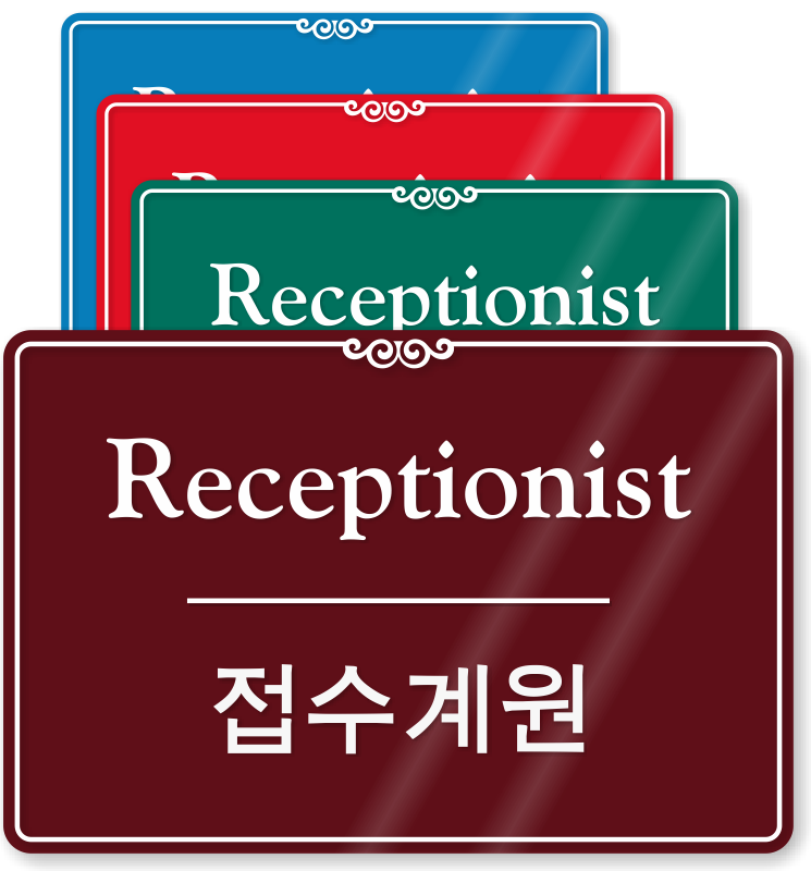 Make it convenient for your visitors to look for the receptionist. This Bilingual Korean/English Wall sign is ideal for communicating the information to Korean speaking visitors.