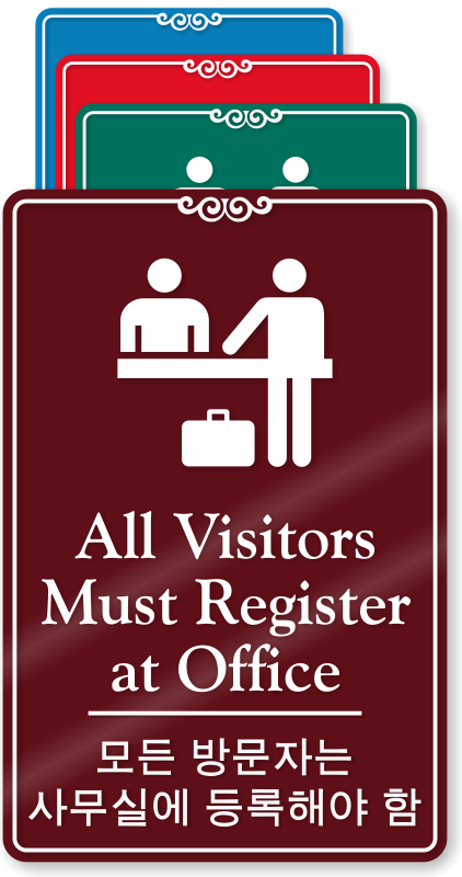 Make it mandatory for visitors to get themselves registered at the office before entering. Give them a polite reminder by using this Korean/English Bilingual Wall sign.
