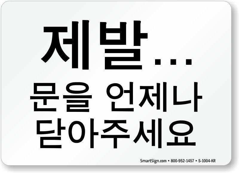 Give clear instructions to the occupants to keep the door closed at all times. This Korean Door Gate sign is ideal for the Korean speaking population.