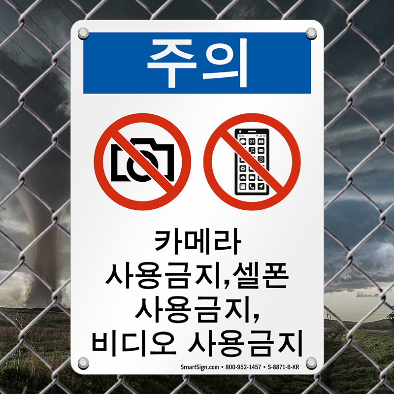 Send a clear message to your Korean speaking workers that cameras, cell phones and video are not allowed on the premises. Deploy this Korean OSHA Notice sign and prohibit the use.