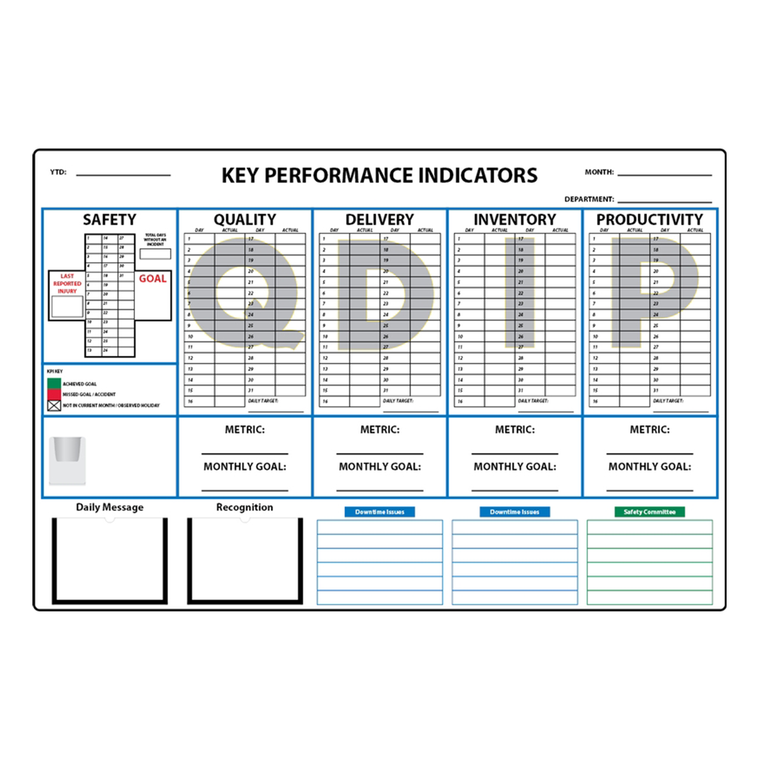 Key Performance Indicator (KPI) Board: Safety Quality Delivery Inventory Productivity (SQDIP) S2-5445