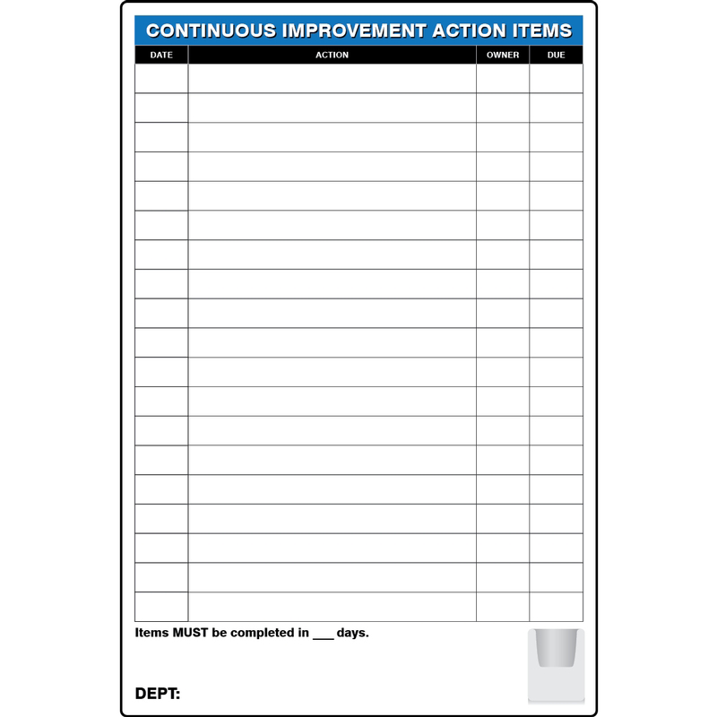 Use our Continuous Improvement KPI-Board to display action items for ongoing processes.