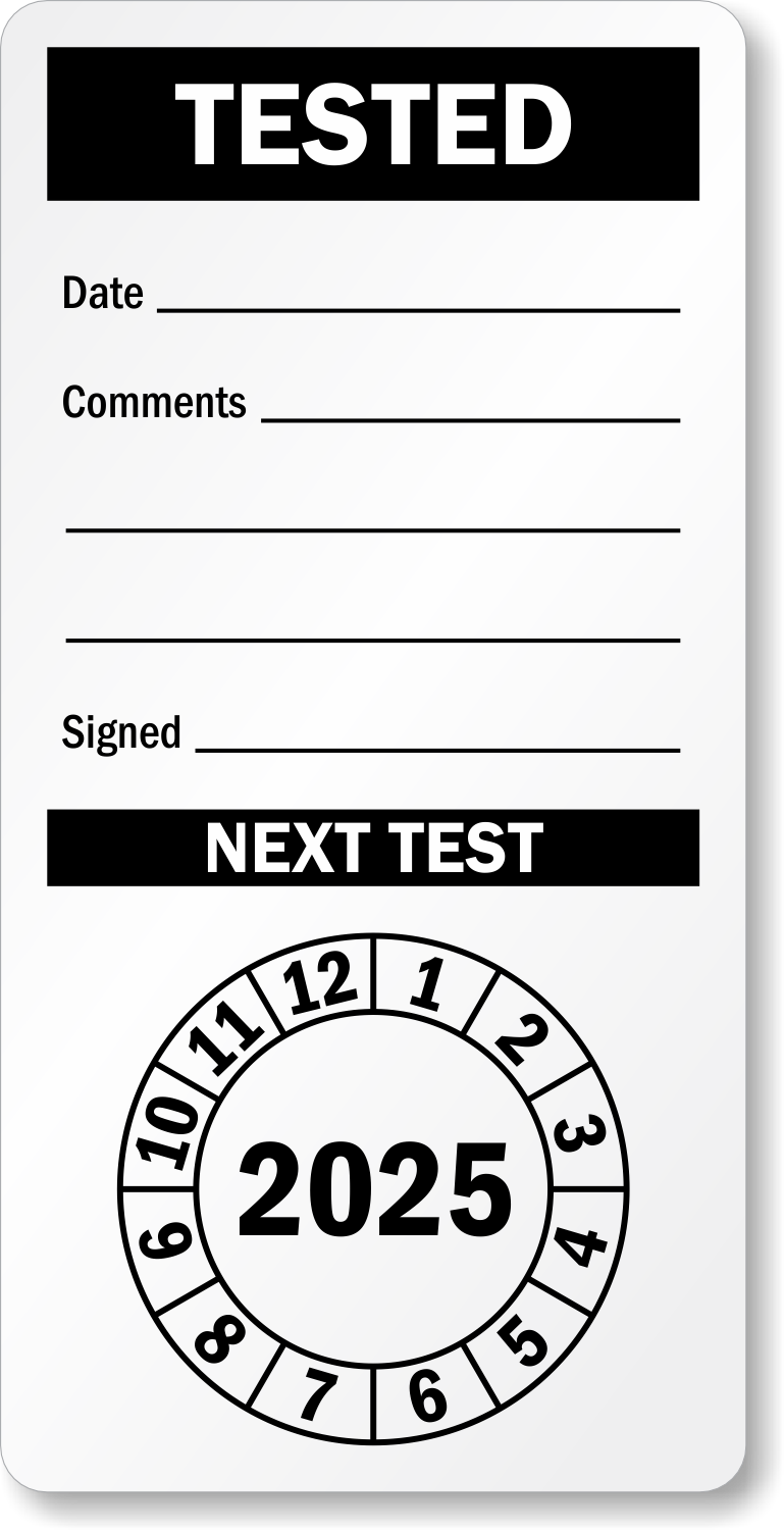 Make your inspection a piece of cake with an Tested Label. Punch Out Labels ensure everyone is up to date.