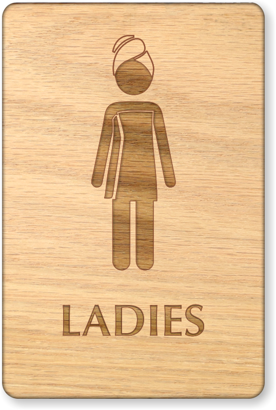 Wooden Restroom Sign: Ladies (With Woman In Towel Symbol) SE-6980 Learn More...