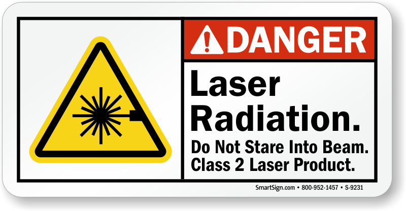 ANSI Danger Sign: Laser Radiation. Do Not Stare Into Beam Class 2 Laser Product. S-9231