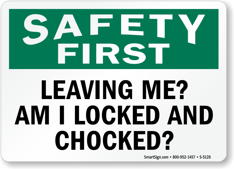 Use this sign as a reminder for your workers so they check to see if the truck is locked and chocked properly before they leave.