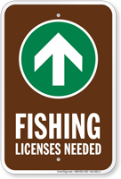 Campground Sign, Park Sign & Guide Sign: Fishing - License Needed (With Up Arrow) K2-4451-U Learn More...