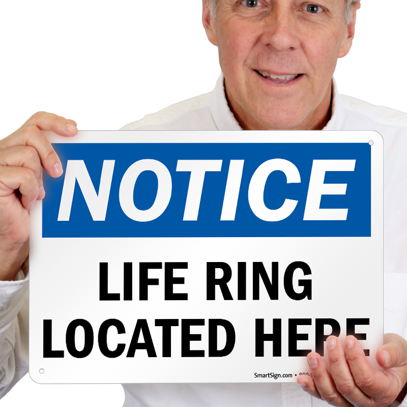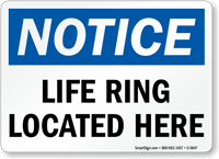 Knowing the location of emergency equipment is vital during a disaster. Let everyone be aware of where the life ring is stored in your facility with this OSHA Notice Sign.