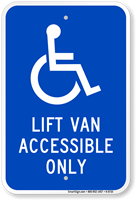 Clearly state that the parking space is reserved for the lift van accessible only by installing this durable and high visibility sign in the area. ADA symbol ensures compliance.