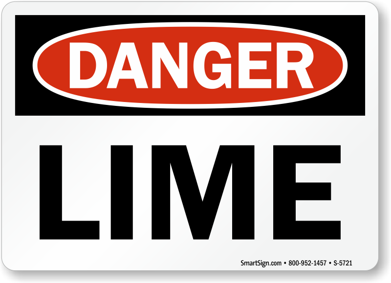 Lime Sulphur is a highly reactive chemical. This bold OSHA Danger Sign cautions everyone against Lime stored or used in your facility.