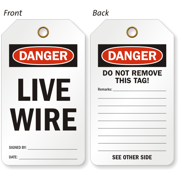 2-Sided OSHA Danger Safety Tag: Live Wire Do Not Remove This Tag TG-0482