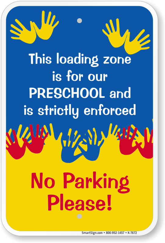 Drop Off and Pick Up School Zone Sign: This Loading Zone Is For Our Preschool And Is Strictly Enforced, No Parking Please! K-7672