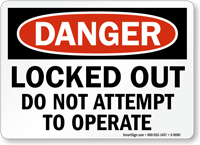 OSHA Danger Lockout Sign: Locked Out Do Not Attempt To Operate S-9090
