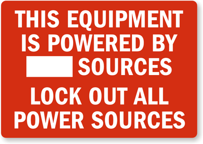 Laminated Vinyl Label: This Equipment Is Powered By Sources Lock Out All Power Sources Label L-0044-XV Learn More...