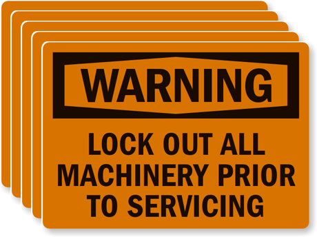 OSHA Warning Safety Label : Lock Out All Machinery Prior To Servicing Label L-0013-VS