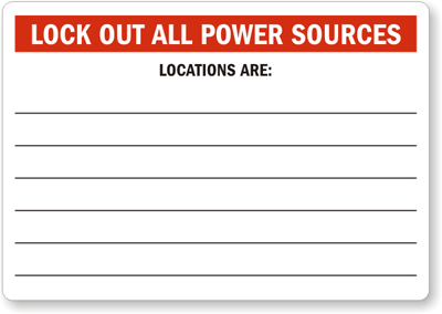 Laminated Vinyl Label: Lock Out All Power Sources Label Locations Are L-0045-XV Learn More...