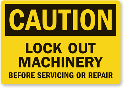 OSHA Caution Label: Lock Out Machinery Before Servicing or Repair L-0022-XV