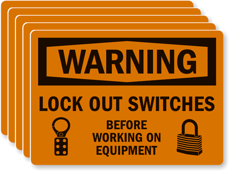 OSHA Warning Safety Label : Lock Out Switches Before Working On Equipment Label L-0014-VS