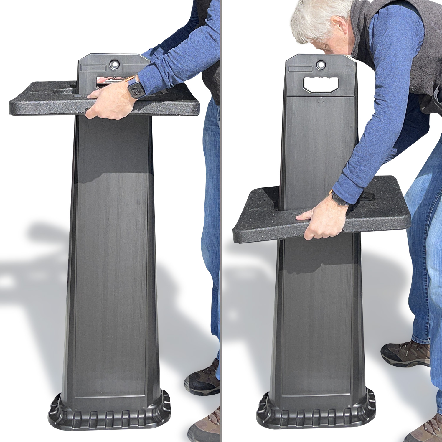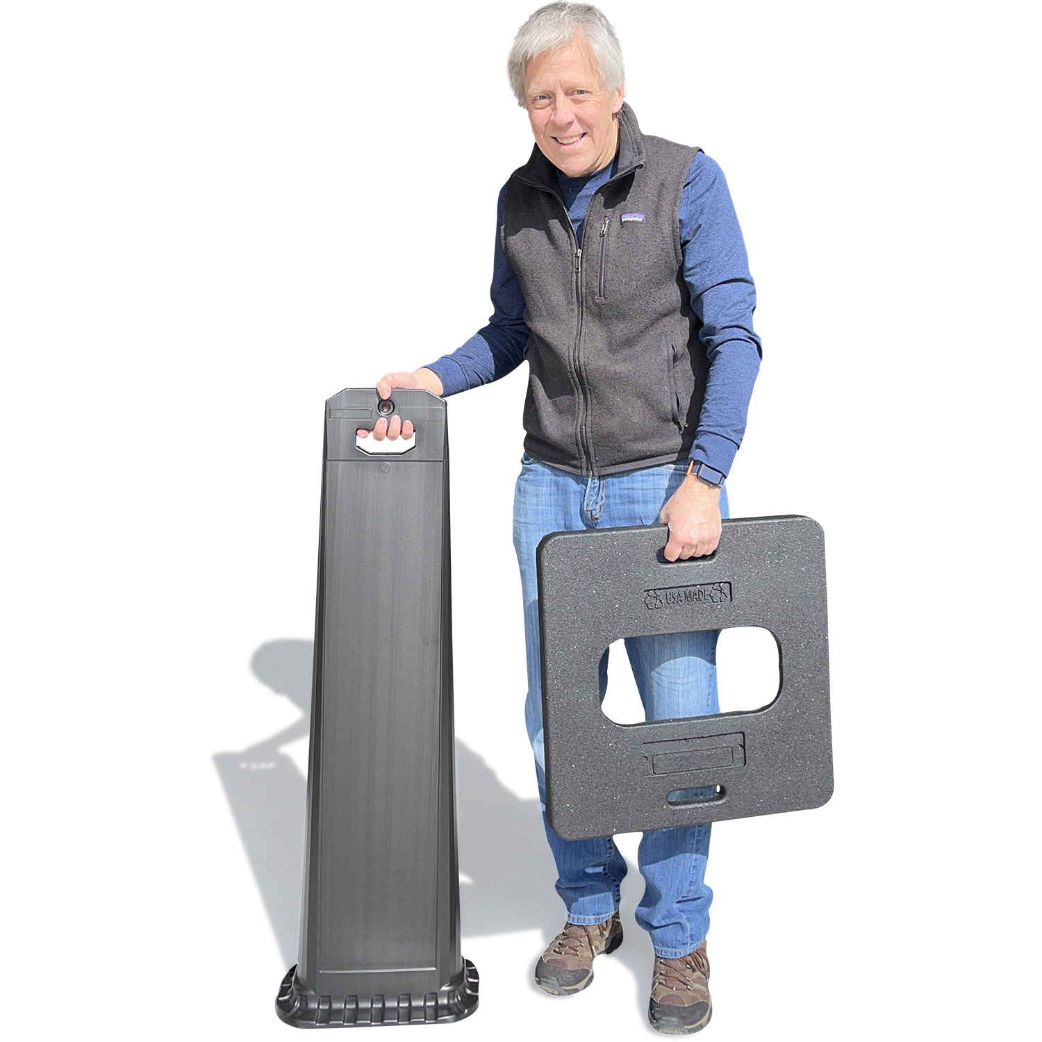 Comes with 20 lbs. recycled rubber base for greater stability.
