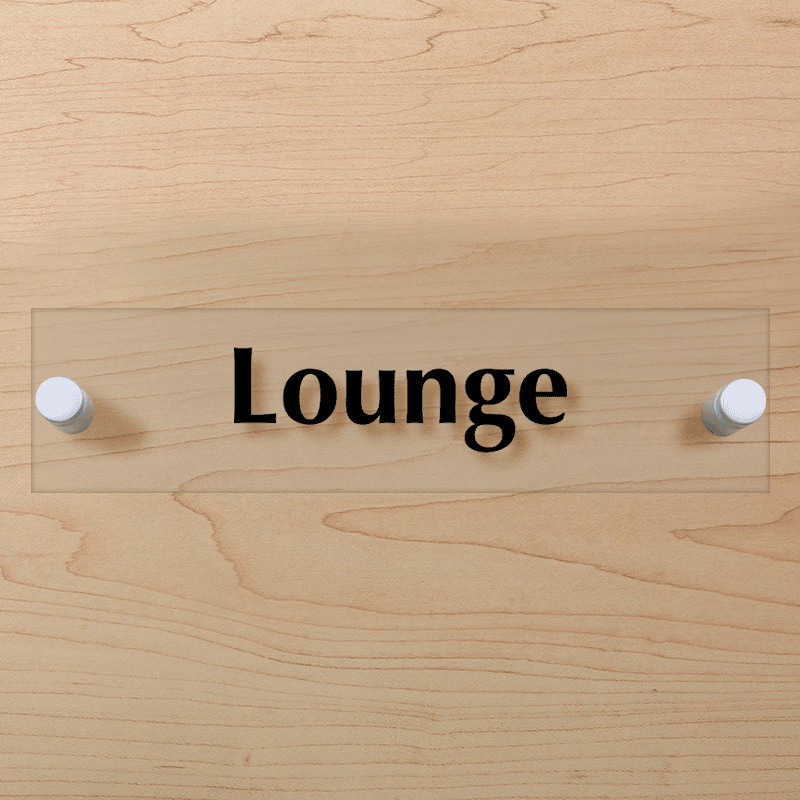 ClearBoss Signs spell out an attractive blend of beauty, functionality, and durability. Use this acrylic sign to mark Lounge in your facility.