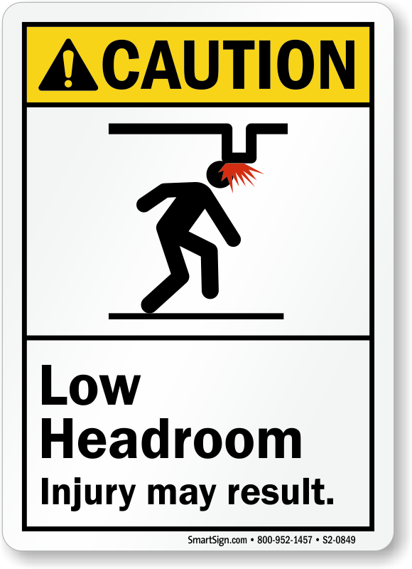 ANSI Caution Sign: Low Headroom, Injury May Result