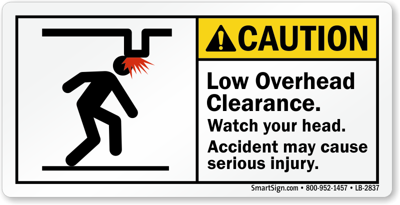 ANSI Caution Safety Label: Low Overhead Clearance Watch Your Head Accident May Cause Serious Injury (With Head Crashing Graphic) LB-2837