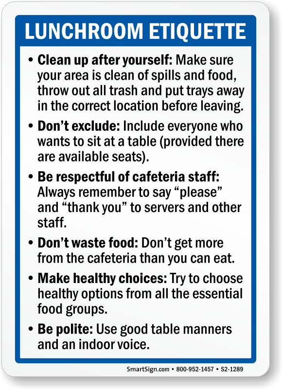 Lunchroom and Cafeteria Sign: Lunchroom Etiquette S2-1289