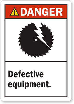5in. x 3.5in. Laminated Vinyl Label: ANSI Danger, Defective Equipment L-0212-XV