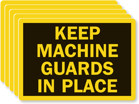 Make sure that you machinery is guarded and that labels warn against this possible hazard.