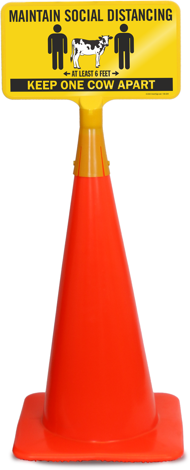 Explain very clearly how much distance must be maintained between two individuals by taking the example of cow - this Social Distancing Sign is easy to understand.