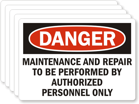3.5in. x 5in. Laminated Vinyl 5 Labels/Pack: OSHA Danger - Maintenance And Repair To Be Performed By Authorized Personnel L-0246-VS