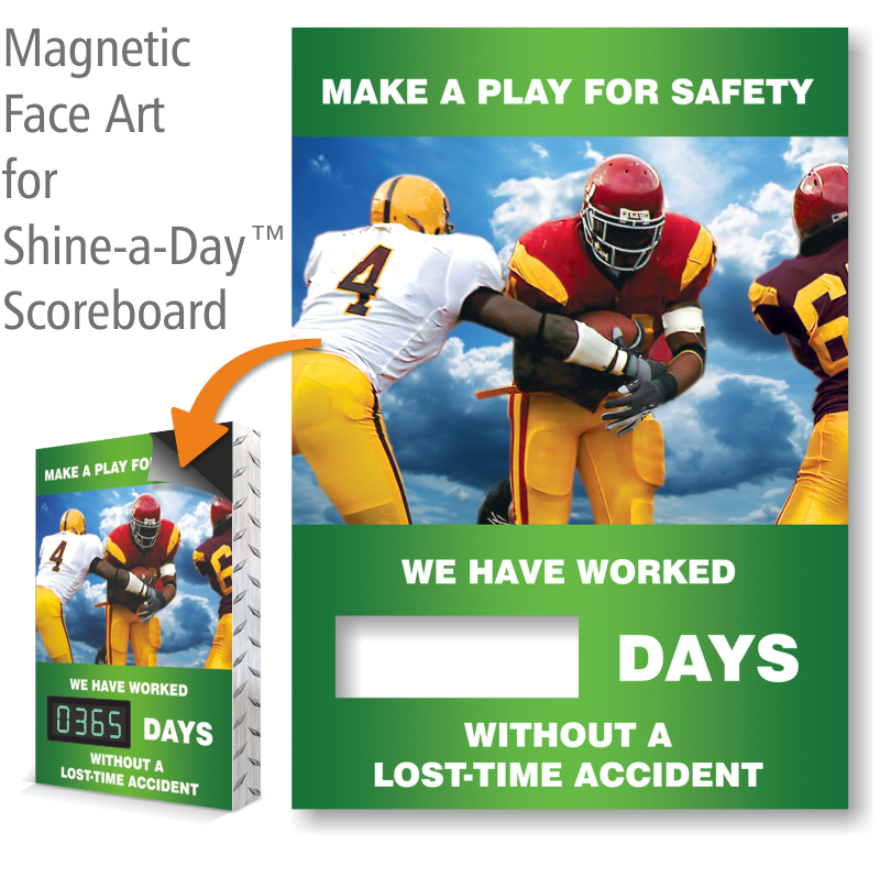 With a boosting message, your team can be reminded of their safety targets every day! Changeable Shine-a-Dayâ„¢ Magnetic Face is flexible and can be easily applied on a backboard measuring 28" x 20" x 2".
