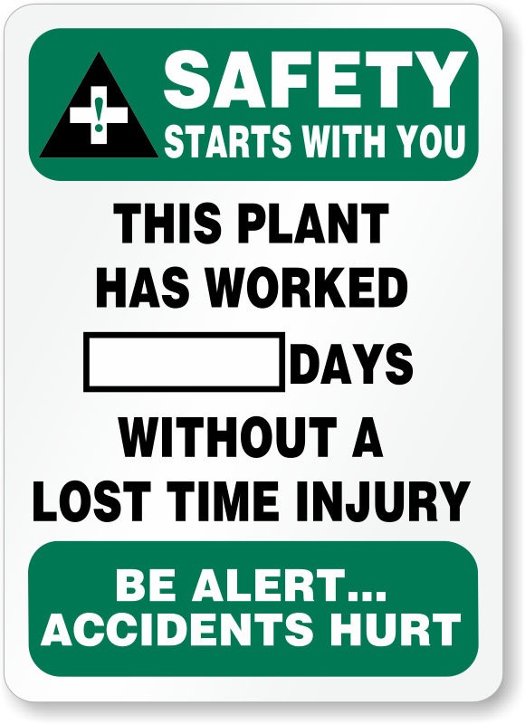 Dry erase Mark-a-Dayâ„¢ Safety Scoreboards provide a visual record of days without an accident. Accidents in the workplace are dangerous, leading to lost time and a reduction in productivity.