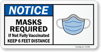 Face Mask Sign: Notice - Masks Required If Not Fully Vaccinated, Keep 6 Feet Distance S2-4936