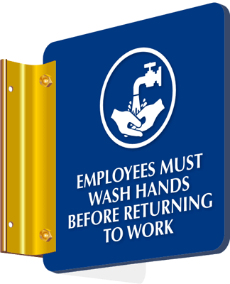 2-Sided Spot-a-Signsâ„¢: Employees Must Wash Hands Before Returning To Work With Symbol Learn More...