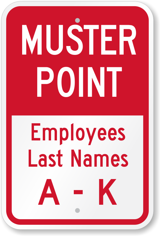 Emergency Assembly Sign: Muster Point - Employees Last Names A-K K-0099-AK Learn More...