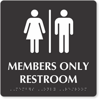 9in. x 9in. TactileTouchâ„¢ Braille Sign: Members Only Restroom With Man And Woman Pictograms SE-5322