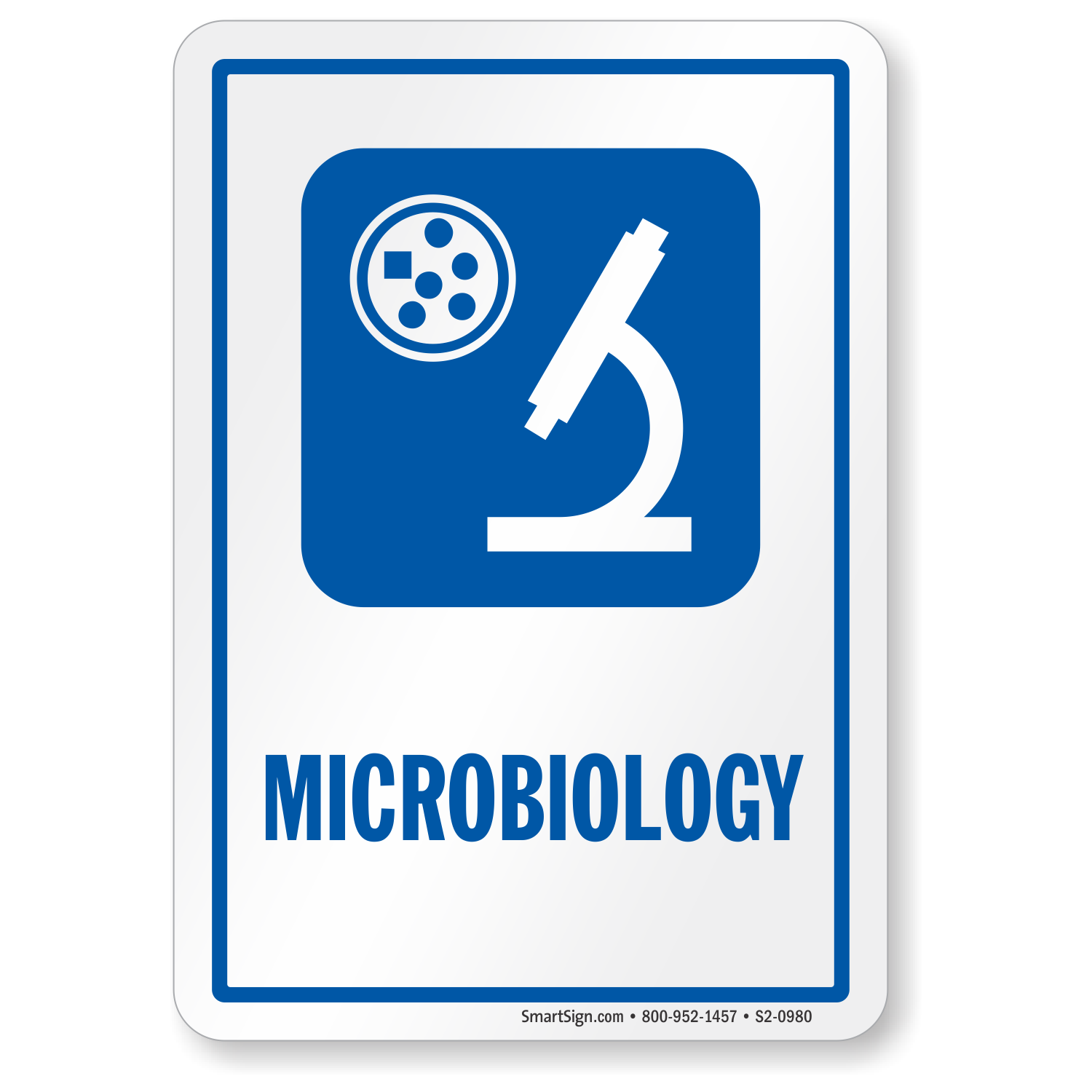 The Microscope and Bacteria's Symbol, displayed on this sign helps your staff and visitors to easily locate the microbiology department at your facility.