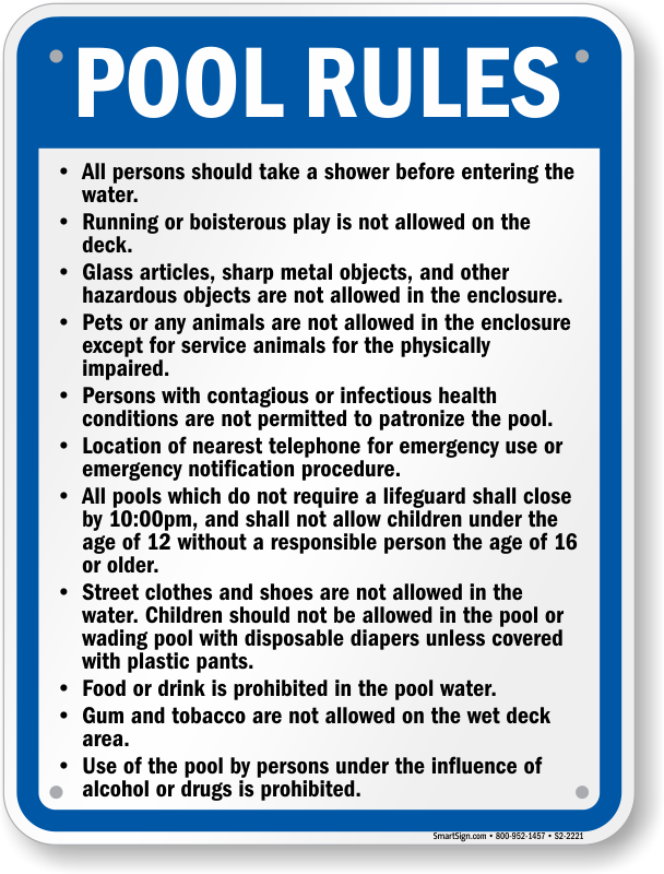Missouri (Kansas City) Pool Sign: Pool Rules S2-2221 Learn More...