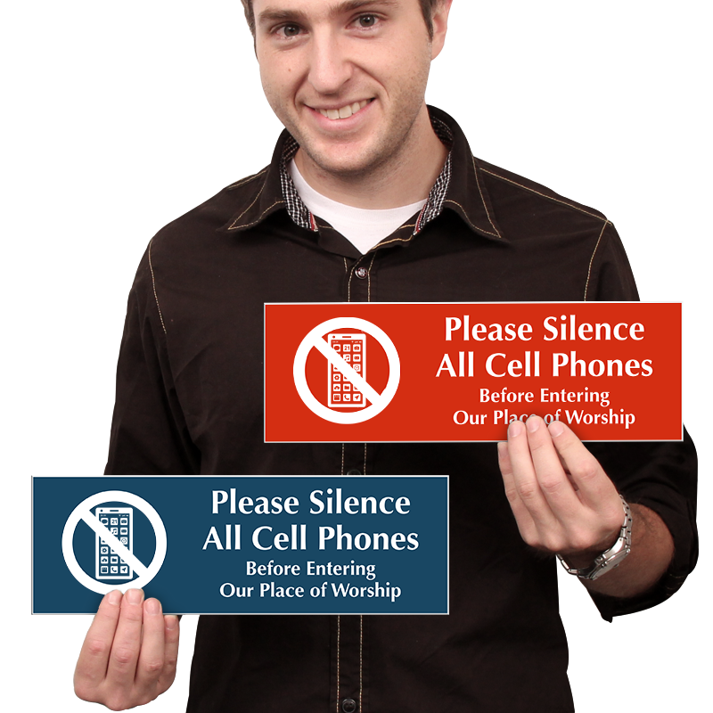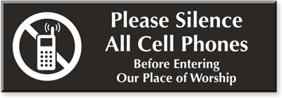 Select-a-Color Engraved Sign: Please Silence All Cell Phones, Before Entering Our Place Of Worship (with Graphic) SE-2558