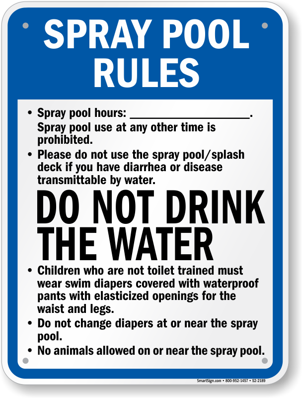 Montana Pool Sign: Spray Pad Rules - Do Not Drink The Water S2-2189 Learn More...